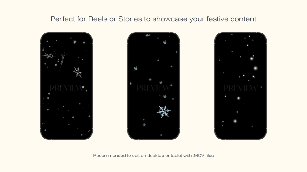 These snowflake overlays are just what you need to give your videos a cozy, festive vibe. Ready-to-go and easy to overlay, they work perfectly for any holiday project.