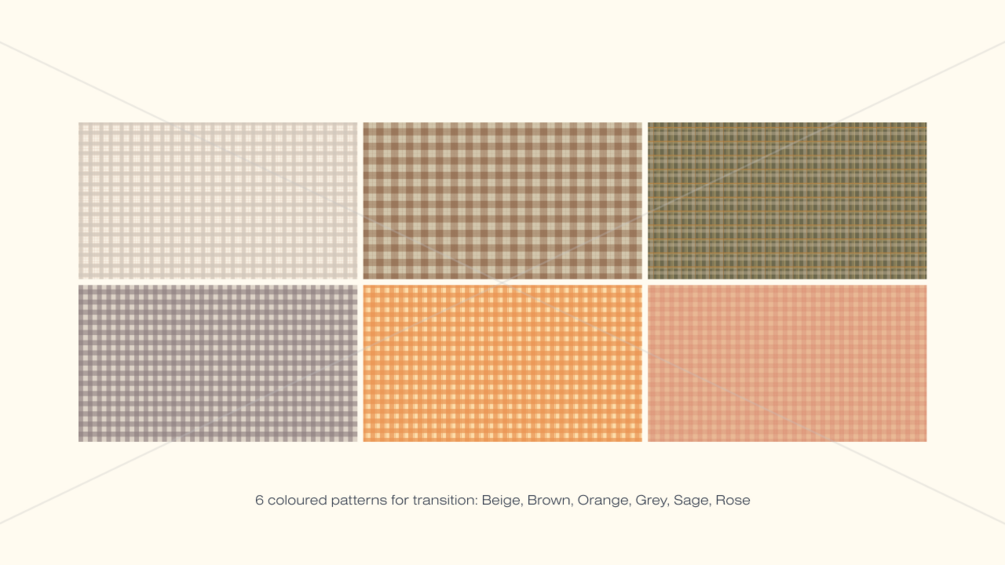 - 6 colours: Beige, Brown, Orange, Grey, Sage, Rose