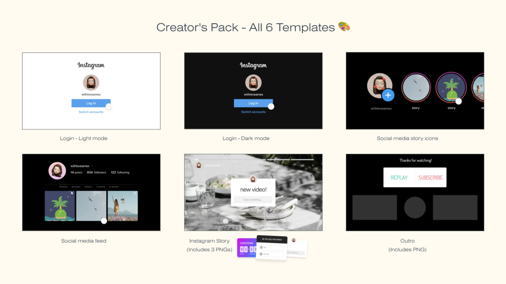 Design & animation by Ames. Follow me on Instagram, or check out more template resources on my Gumroad. 👋 Interested in getting your own custom intro on your YouTube channel? Check out my custom gigs here.