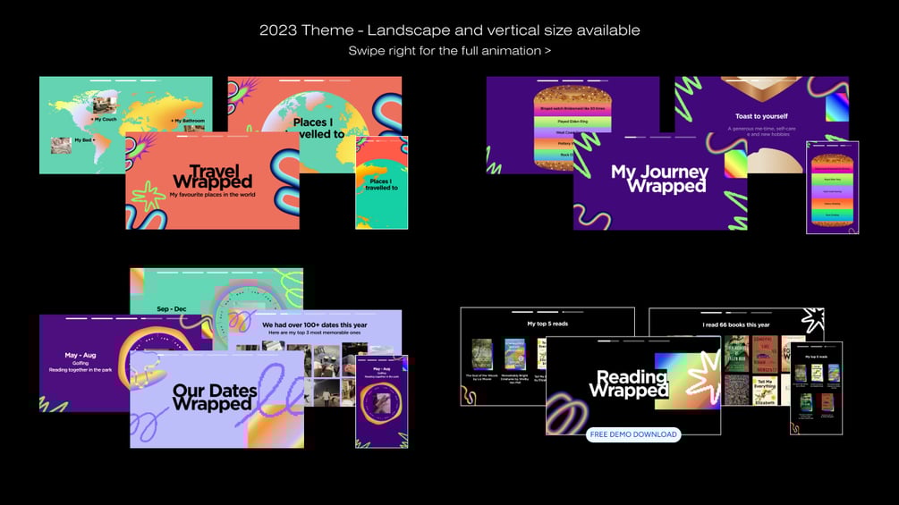 Give your friends, family or colleagues the ultimate wrap of your year with these YouTube video templates inspired by Spotify Wrapped 🎶 These themes are based on Spotify Wrapped from 2022 to 2025.